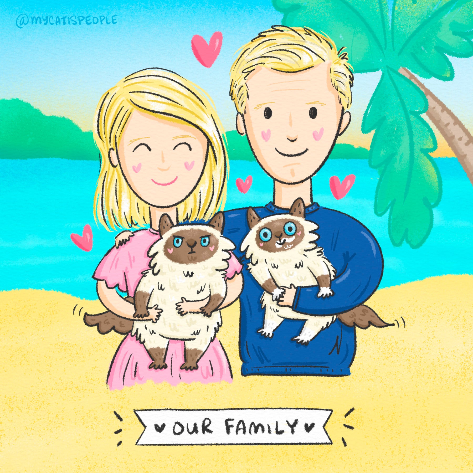 • Custom drawn purrfect doodle family pet portrait by My Cat Is People